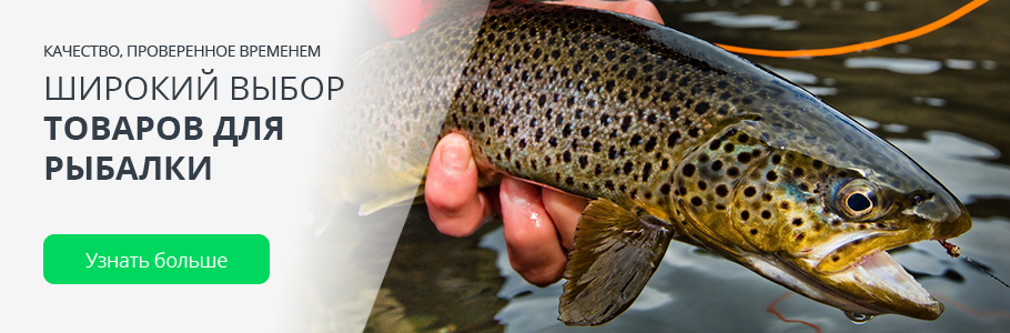 - Огромный ассортимент рыболовных снастей и аксессуаров;