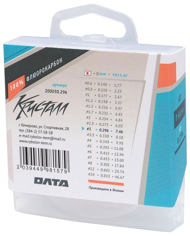 Читать все статьиЛеска КРИСТАЛЛ Флюорокарбон/Олта/, 30м, 0.296мм-7.46кг, упаковка 1шт.