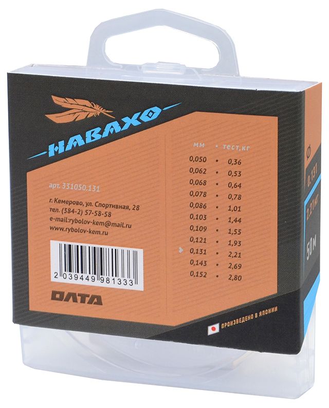 Читать все статьиЛеска НАВАХО/Олта/, 50м, 0.131мм-2.21кг, упаковка 1шт.