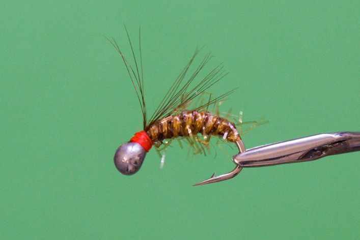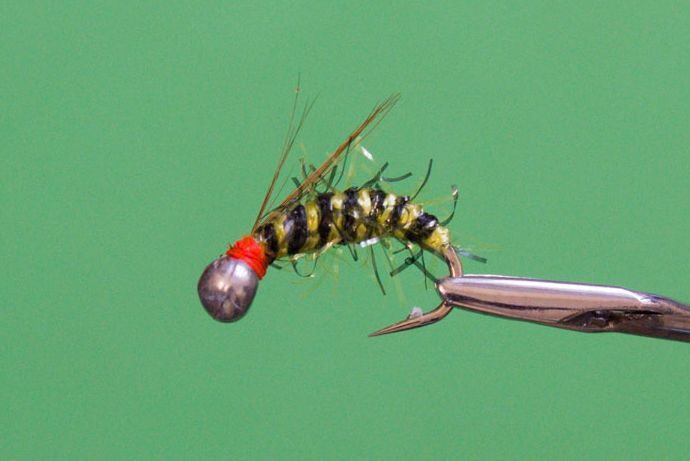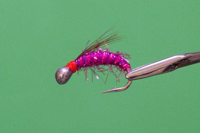 В нимфе использована синель с блестящими синтетическими волокнами. Их форма призвана имитировать трахейные жабры и многочисленные волоски на теле водных организмов, а прозрачность и блеск — захватываемые некоторыми насекомыми пузырьки воздуха. Причем здесь применена синель сразу двух цветов, что придает мушке еще больше блеска. Путем множества экспериментов на водоемах подобрана палитра из пяти наиболее привлекательных для рыбы окрасок. Шейка из красной флюоресцентной монтажной нити повышает привлекательность нимфы.