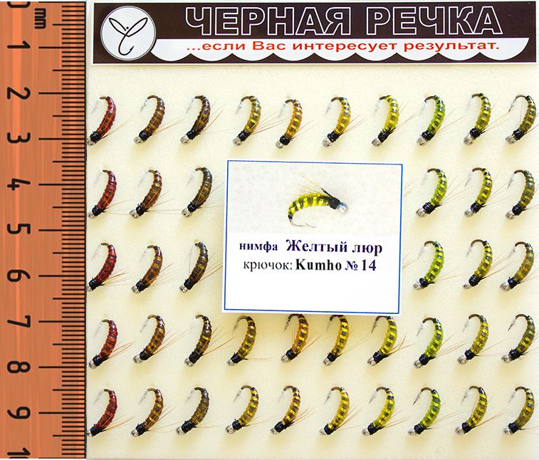 Эта фантазийная приманка может имитировать широкий спектр водных насекомых за счет сочетания нужной окраски, сегментации золотистым люрексом и отчетливого голографического эффекта от ПВХ-покрытия. Повышенная прочность позволяет использовать нимфу "Желтый люр" для ловли ленка и других хищных рыб.