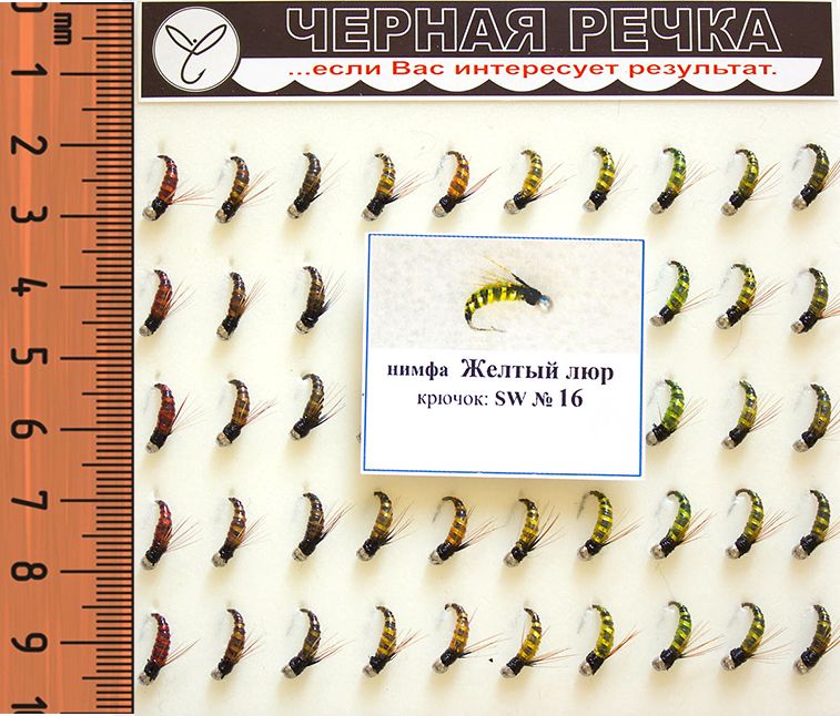 Эта фантазийная приманка может имитировать широкий спектр водных насекомых за счет сочетания нужной окраски, сегментации золотистым люрексом и отчетливого голографического эффекта от ПВХ-покрытия. Повышенная прочность позволяет использовать нимфу "Желтый люр" для ловли ленка и других хищных рыб.
