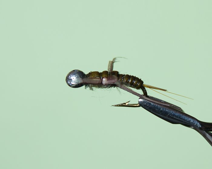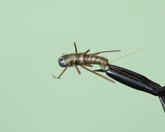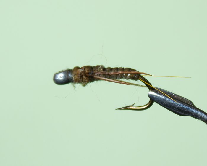 Тело и зачатки крыльев: цветная нить, цветная полимерная пленка, даббинг, обмотка мононитью