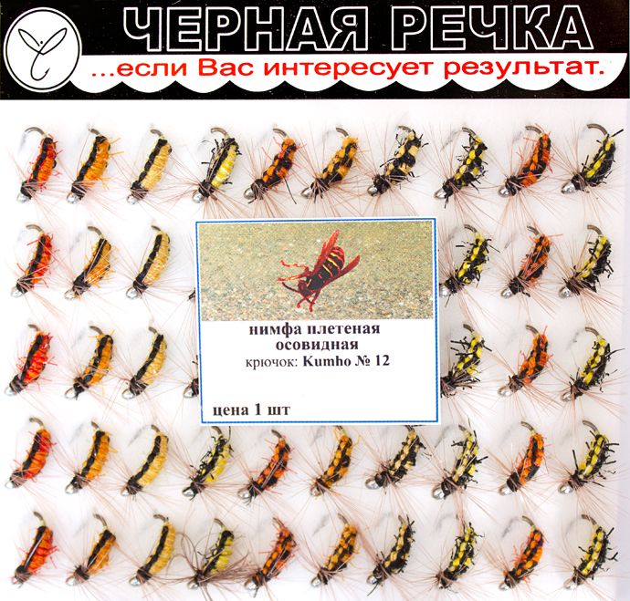 Плетеная мушка с применением микросинели, для рыболовов, предпочитающих ворсистое тело приманки. За счет плетения создается уплощенный силуэт, характерный для большинства водных и прибрежных насекомых. Цветовой ряд представлен сочетанием черного с желтыми и оранжевыми тонами разной интенсивности. Часть вариантов исполнена усложненным вариантом плетения, позволяющим создать полосатую окраску. Мушка фантазийная, при этом неплохо имитирует ос, некоторых слепней и водяных жуков. Наиболее хорошо нимфа Осовидная проявила себя в сезон открытой воды.