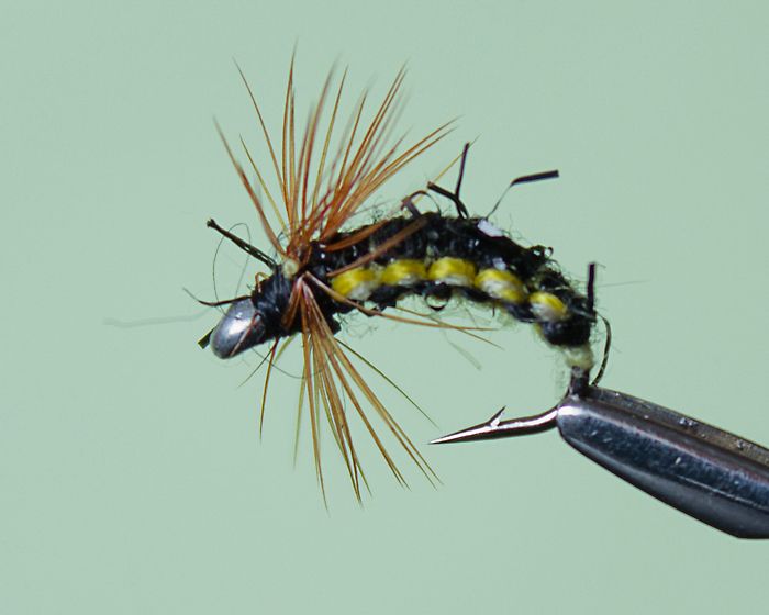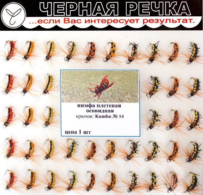 Плетеная мушка с применением микросинели, для рыболовов, предпочитающих ворсистое тело приманки. За счет плетения создается уплощенный силуэт, характерный для большинства водных и прибрежных насекомых. Цветовой ряд представлен сочетанием черного с желтыми и оранжевыми тонами разной интенсивности. Часть вариантов исполнена усложненным вариантом плетения, позволяющим создать полосатую окраску. Мушка фантазийная, при этом неплохо имитирует ос, некоторых слепней и водяных жуков. Наиболее хорошо нимфа Осовидная проявила себя в сезон открытой воды.