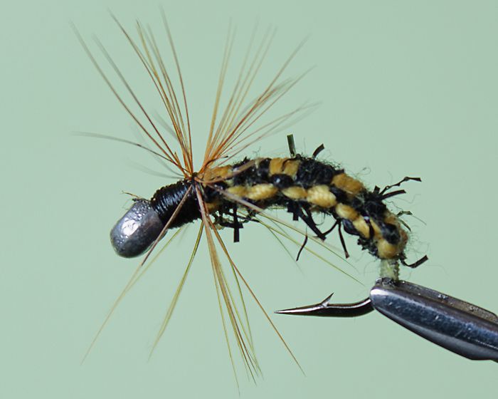 Плетеная мушка с применением микросинели, для рыболовов, предпочитающих ворсистое тело приманки. За счет плетения создается уплощенный силуэт, характерный для большинства водных и прибрежных насекомых. Цветовой ряд представлен сочетанием черного с желтыми и оранжевыми тонами разной интенсивности. Часть вариантов исполнена усложненным вариантом плетения, позволяющим создать полосатую окраску. Мушка фантазийная, при этом неплохо имитирует ос, некоторых слепней и водяных жуков. Наиболее хорошо нимфа Осовидная проявила себя в сезон открытой воды.