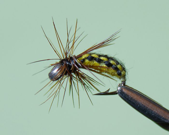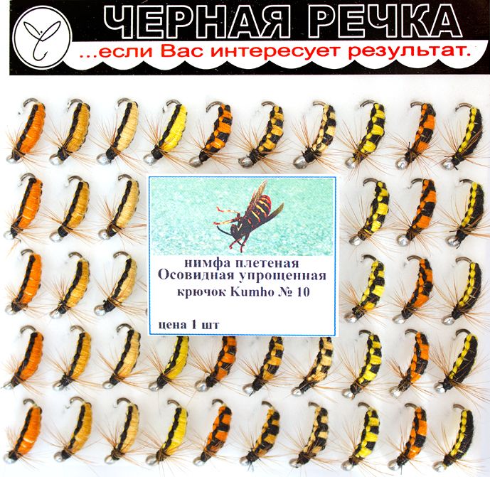 Плетеная мушка без применения микросинели, для рыболовов, предпочитающих достаточно гладкое тело приманки. За счет плетения создается уплощенный силуэт, характерный для большинства водных и прибрежных насекомых. Название нимфы объясняется появлением раньше нее нимфы Осовидная, которая вяжется с применением микросинели. «Упрощенность» приманки при этом не отражается на ее высокой уловистости. Цветовой ряд представлен сочетанием черного с желтыми и оранжевыми тонами разной интенсивности. Часть вариантов исполнена усложненным вариантом плетения, позволяющим создать полосатую окраску. Нимфа всесезонна. Варианты с ровной окраской лучше работают в конце весны — начале лета, с полосатой — с начала вылета слепней и ос до первого снега. Со льда лучше применять нимфы с включением оранжевой нити.