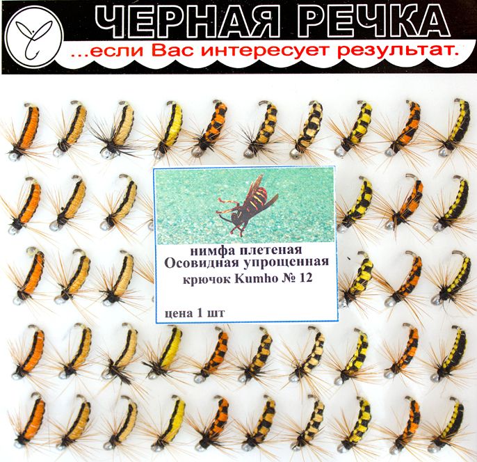Плетеная мушка без применения микросинели, для рыболовов, предпочитающих достаточно гладкое тело приманки. За счет плетения создается уплощенный силуэт, характерный для большинства водных и прибрежных насекомых. Название нимфы объясняется появлением раньше нее нимфы Осовидная, которая вяжется с применением микросинели. «Упрощенность» приманки при этом не отражается на ее высокой уловистости. Цветовой ряд представлен сочетанием черного с желтыми и оранжевыми тонами разной интенсивности. Часть вариантов исполнена усложненным вариантом плетения, позволяющим создать полосатую окраску. Нимфа всесезонна. Варианты с ровной окраской лучше работают в конце весны — начале лета, с полосатой — с начала вылета слепней и ос до первого снега. Со льда лучше применять нимфы с включением оранжевой нити.