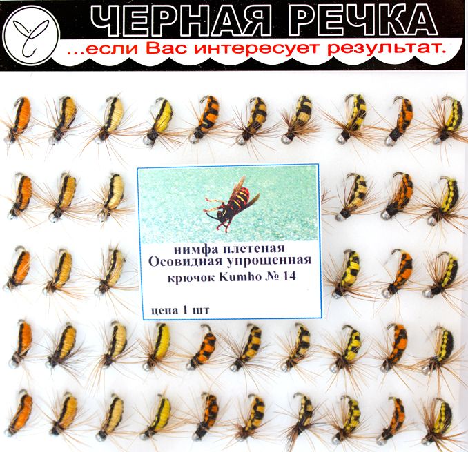 Плетеная мушка без применения микросинели, для рыболовов, предпочитающих достаточно гладкое тело приманки. За счет плетения создается уплощенный силуэт, характерный для большинства водных и прибрежных насекомых. Название нимфы объясняется появлением раньше нее нимфы Осовидная, которая вяжется с применением микросинели. «Упрощенность» приманки при этом не отражается на ее высокой уловистости. Цветовой ряд представлен сочетанием черного с желтыми и оранжевыми тонами разной интенсивности. Часть вариантов исполнена усложненным вариантом плетения, позволяющим создать полосатую окраску. Нимфа всесезонна. Варианты с ровной окраской лучше работают в конце весны — начале лета, с полосатой — с начала вылета слепней и ос до первого снега. Со льда лучше применять нимфы с включением оранжевой нити.