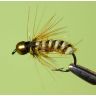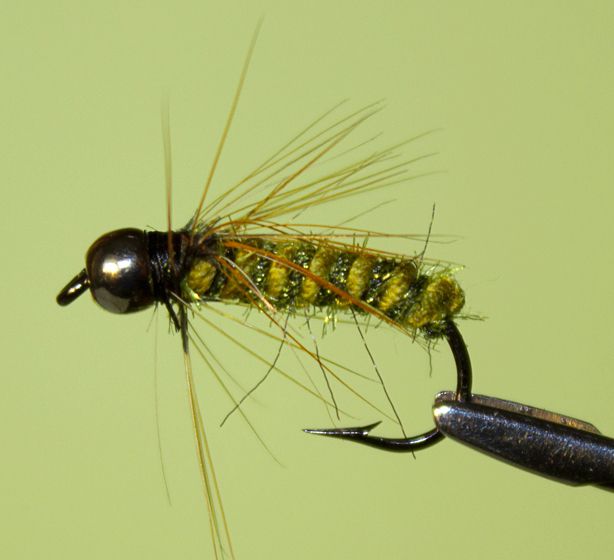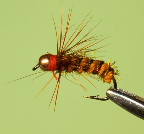 Концепция приманки заимствована из классического европейского нахлыста, поэтому нимфа широко применяется нахлыстовиками. Впрочем, в современной сибирской традиции головки-утяжелители давно уже заняли достойное место, и нимфа "Золотая головка" отлично работает на снастях сибирского типа. Крючок rownd обеспечивает цилиндрическое строение тела мушки (случается, что рыба предпочитает эту форму другим), промотка скруткой из органзы создает привлекательную для рыбы ворсистость и служит удержанию микроскопических пузырьков воздуха. Ершик из петушиного пера анимирует приманку и размывает ее силуэт. Цветовая гамма подобрана таким образом, чтобы в любое время года на большинстве водоемов можно было подобрать приманку нужной окраски.