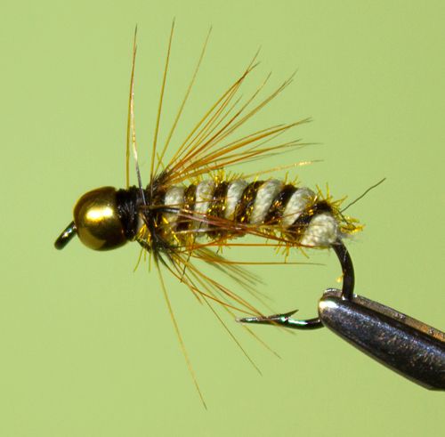 Концепция приманки заимствована из классического европейского нахлыста, поэтому нимфа широко применяется нахлыстовиками. Впрочем, в современной сибирской традиции головки-утяжелители давно уже заняли достойное место, и нимфа "Золотая головка" отлично работает на снастях сибирского типа. Крючок rownd обеспечивает цилиндрическое строение тела мушки (случается, что рыба предпочитает эту форму другим), промотка скруткой из органзы создает привлекательную для рыбы ворсистость и служит удержанию микроскопических пузырьков воздуха. Ершик из петушиного пера анимирует приманку и размывает ее силуэт. Цветовая гамма подобрана таким образом, чтобы в любое время года на большинстве водоемов можно было подобрать приманку нужной окраски.