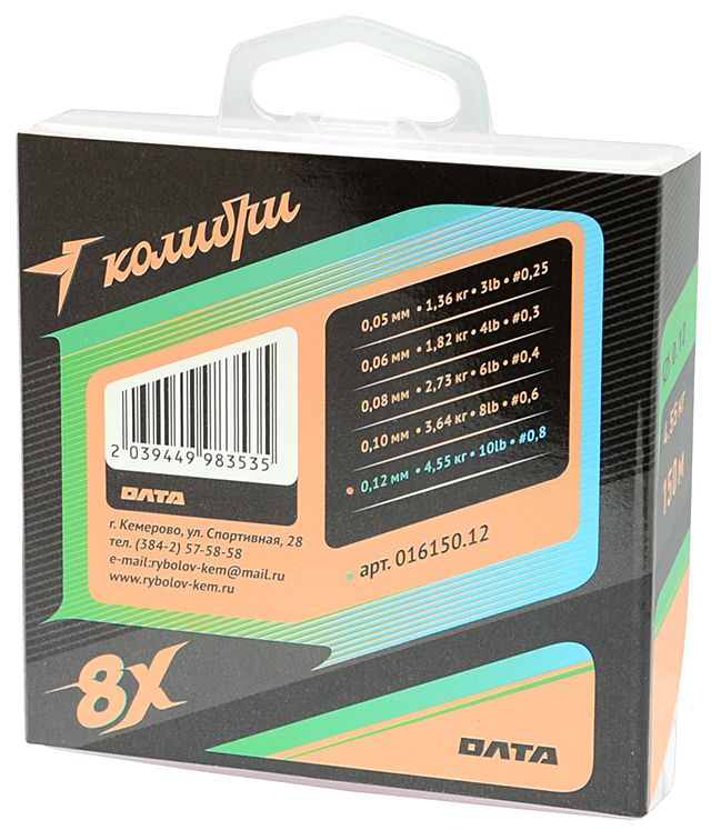 8-жильный плетеный PE-шнур КОЛИБРИ это универсальный шнур для ультралайта, очень плотного плетения, гладкий и прочный.