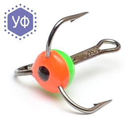 Тройник/Mustad/, N8, флуо/зеленый/желтый/красный с 3D глазком, 10шт